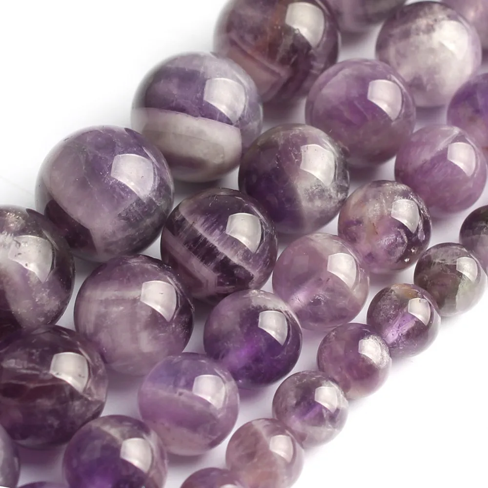 Оптовая продажа природного Класс лаванды Аметист Круглый Loose Камень Бисер 3-18 мм подходящие DIY ожерелья или Браслеты 15 "02845