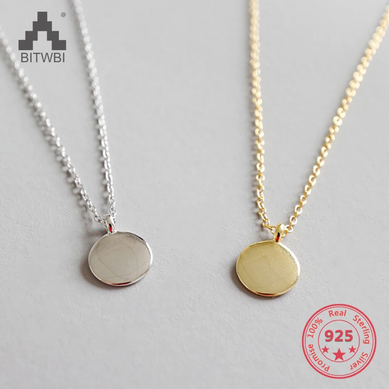 Женское Ожерелье BITWBI, маленькая круглая монета из серебра 925 пробы с геометрическим узором