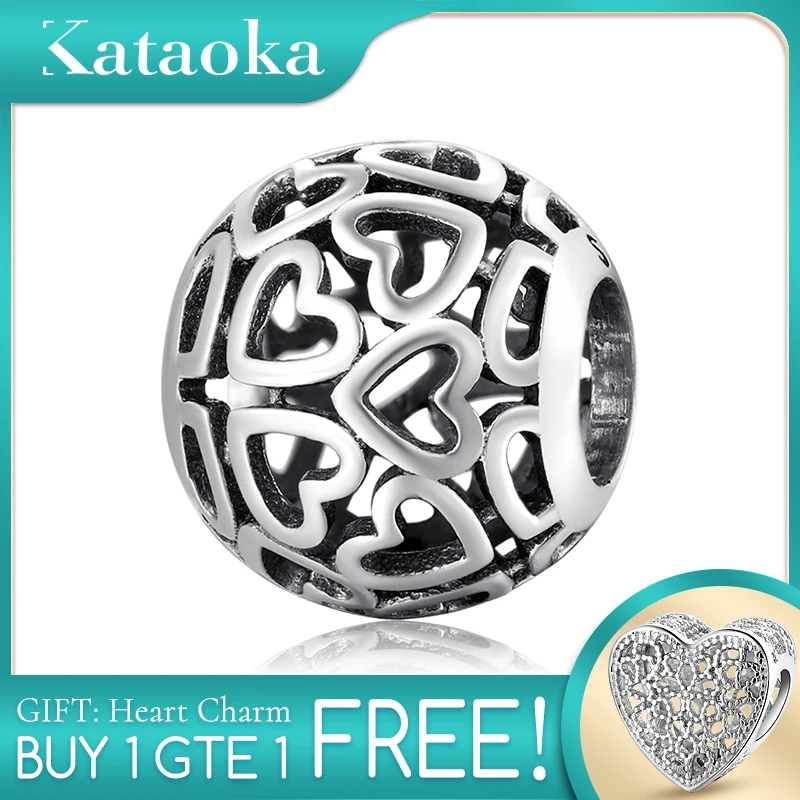 Круглые ажурные бусины с сердечками, подходят для аутентичного браслета Pandora, серебро 925 пробы, оригинальные Diy ювелирные изделия, 2019