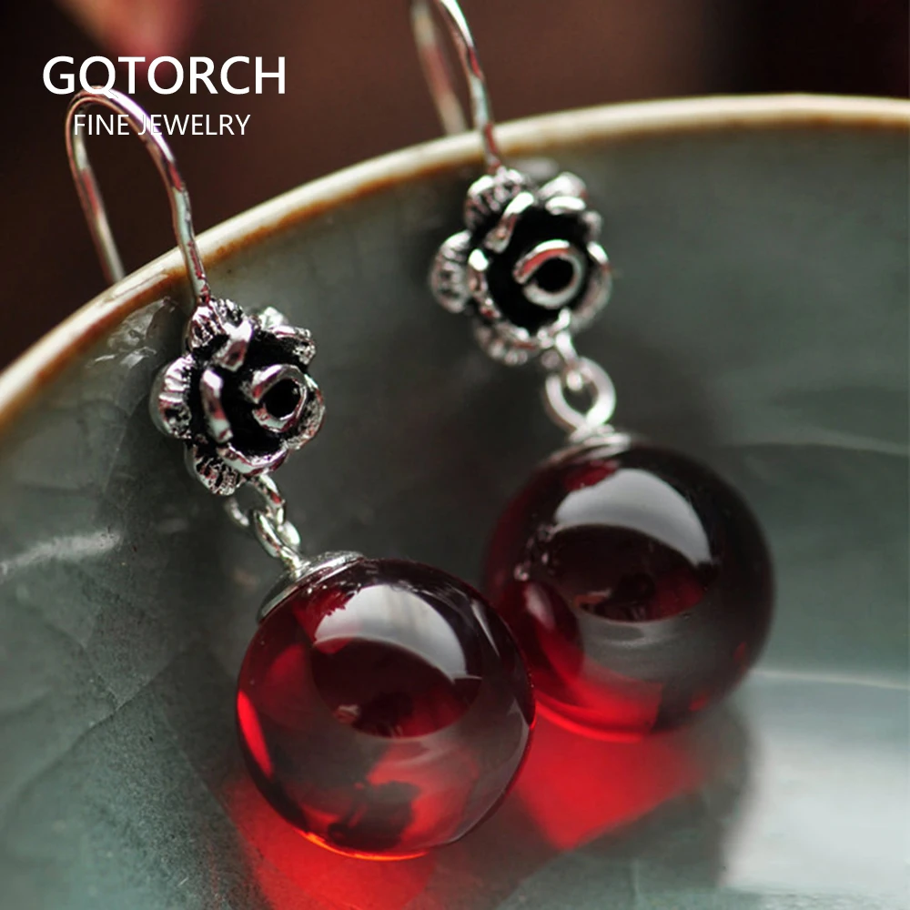 Настоящее серебро 925 пробы ювелирные изделия из натурального камня серьги для женщин красный гранат и белый опал Ретро красивые розы резные