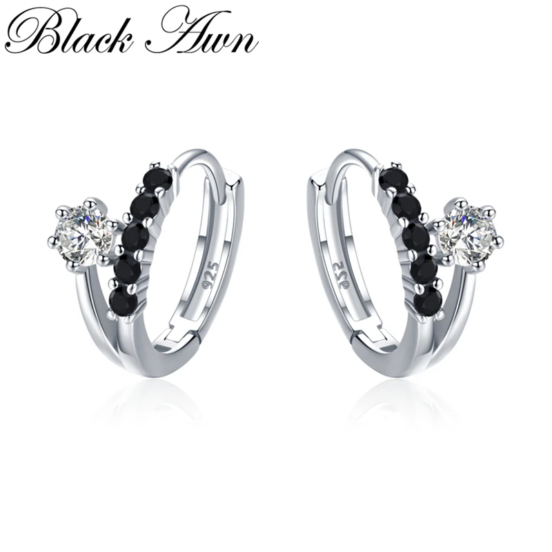 Черный Awn классический 3,5 г стерлингового серебра 925 квадратный черный Шпинель трендовые обручальные серьги-кольца для женщин ювелирные укр...