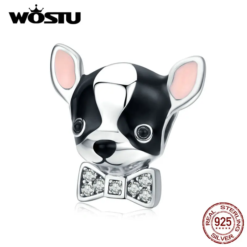 WOSTU, настоящее 925 пробы, серебро, чихуахуа, милая собака, бусины, подвески в виде животных, подходят к оригинальному браслету, серебро 925, ювелирные изделия CQC1310