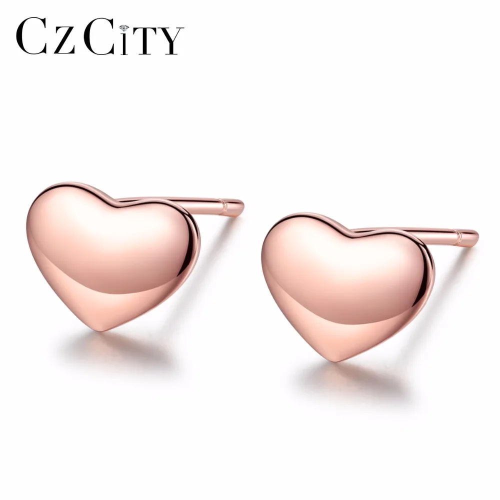 CZCITY, милые серьги-гвоздики в виде сердца для женщин, розовое золото, 925 пробы, серебро, нежные маленькие серьги, хорошее ювелирное изделие, оптовая продажа