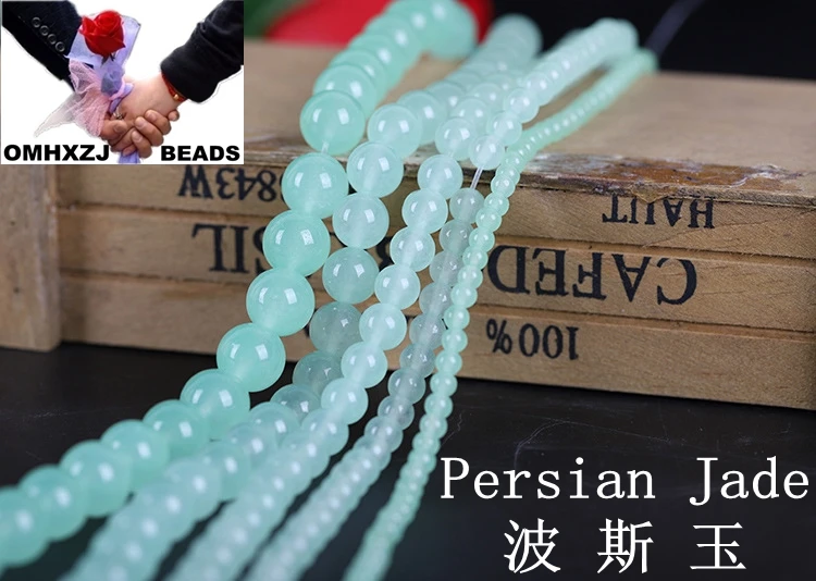 OMHXZJ оптовая продажа 6 8 10 мм Бесплатная доставка Новое поступление ледяно-голубые персидские нефритовые бусины из драгоценного камня размер...