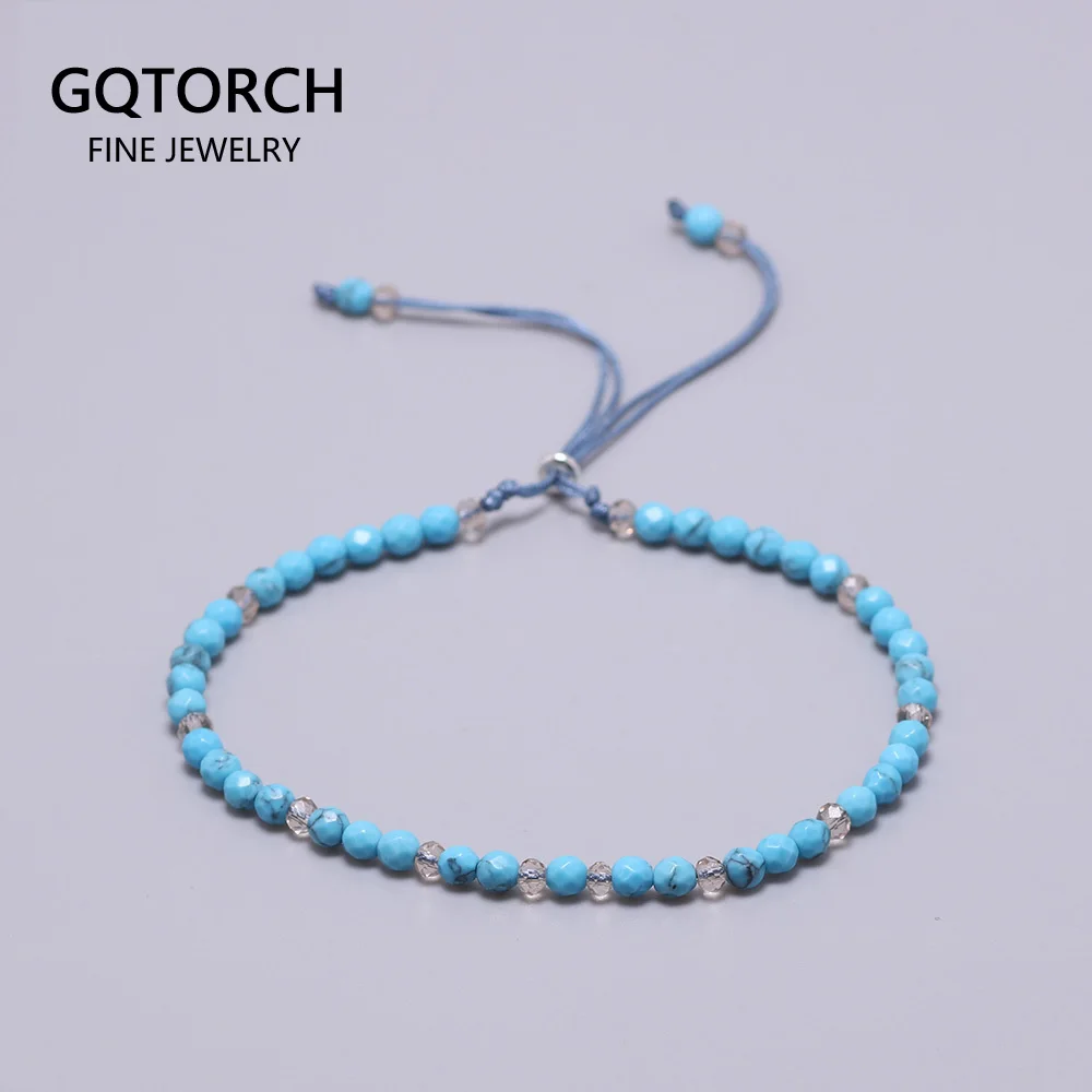 Натуральный браслет из бирюзовых бус для женщин Регулируемая длина 3 мм маленькие Бусы Исцеление йогой браслет натуральный драгоценный камень браслет