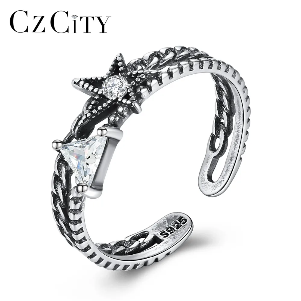 CZCITY Продвижение Подлинная 925 пробы серебро открытым кольца для женщин геометрический дизайн палец кольцо Винтаж юбилей ювелирные УКР