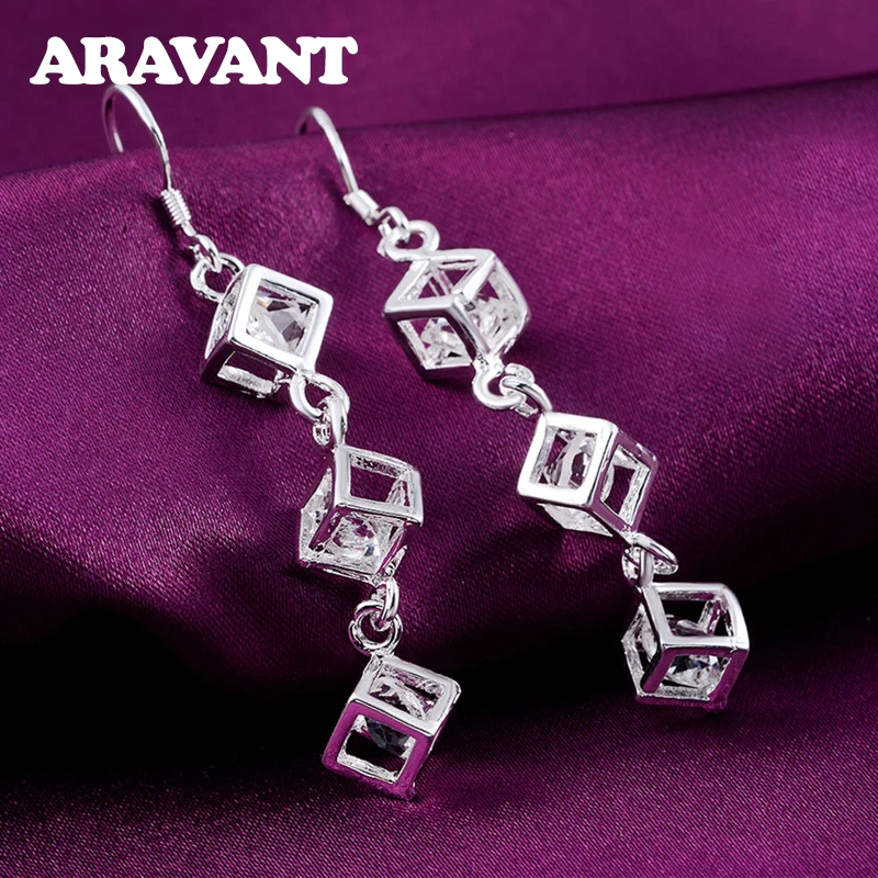 925 серебряные квадратные серьги для женщин, кубический цирконий, длинная серьга, женские серьги, модные ювелирные аксессуары, бижутерия