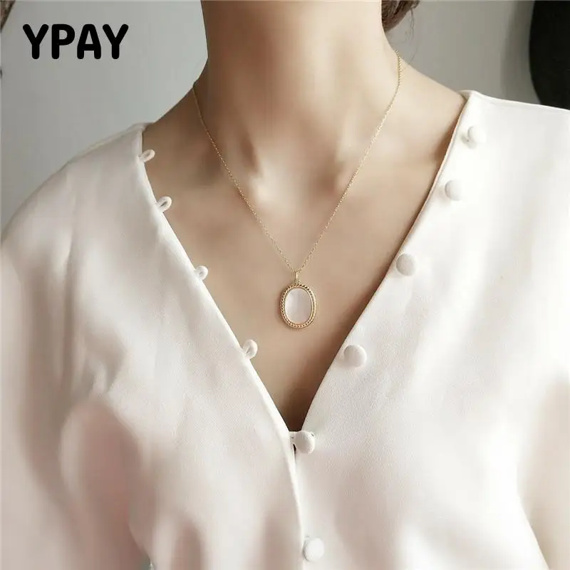 OLOEY Аутентичное ожерелье из стерлингового серебра 925 пробы Овальный Кулон корейское модное Золотое колье ожерелье s Женские Ювелирные издел...