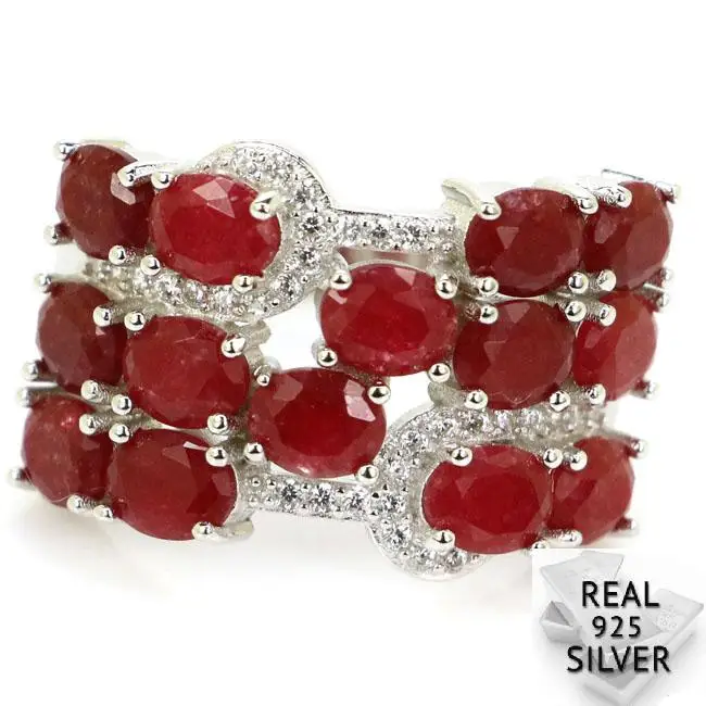 5,9 г Реальные серебро 925 пробы реальный красный рубин обручальные кольца с фианитами США sz 9 #23x15 мм