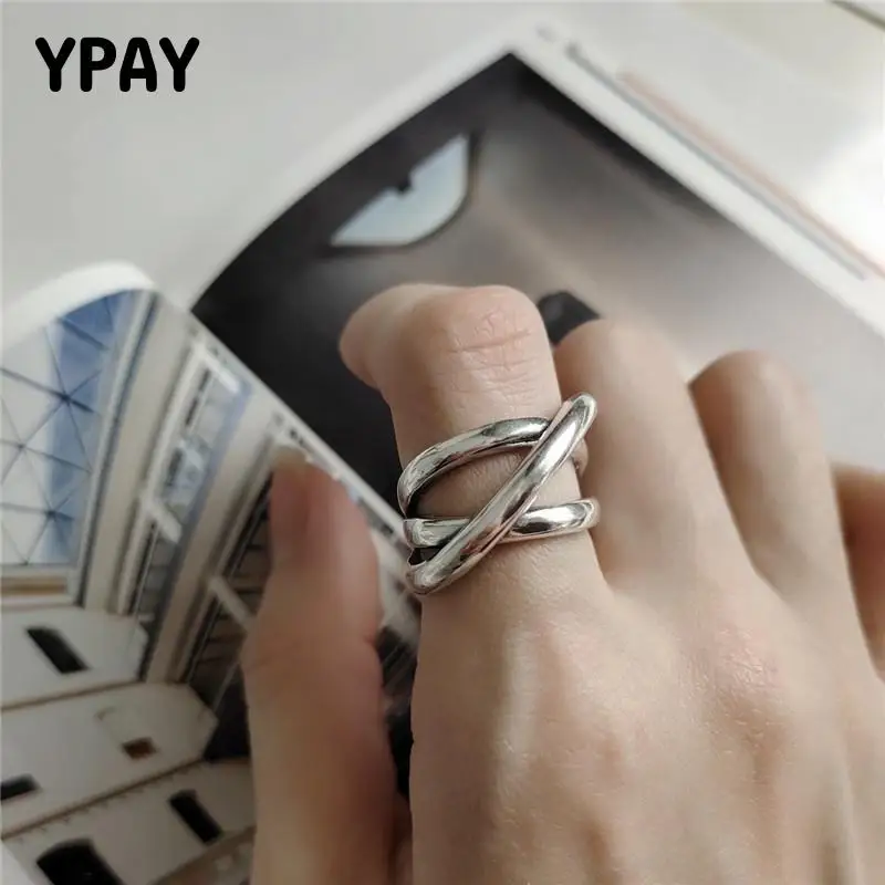 OLOEY Твердые 925 стерлингового серебра Регулируемые кольца Корея геометрические Многослойные линии переплетения Bijoux Femme Ювелирное кольцо в с...