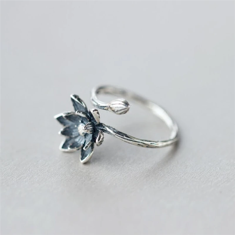 Литературное Стерлинговое Серебро 925 пробы, темперамент лотоса, дикая личность, Ретро стиль, милые модные женские кольца с изменяемым размером, SRI087