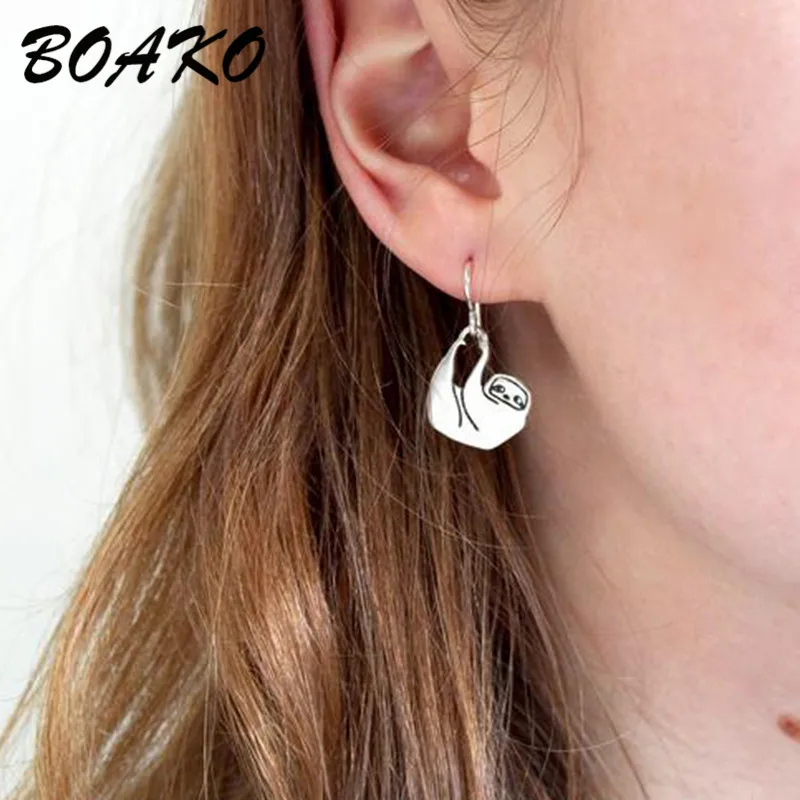 BOAKO, милые, ленивые, сонные, ленивые серьги-гвоздики, 100% Стерлинговое Серебро 925 пробы, Забавный ленивый кулон, маленькие серьги-гвоздики для женщин, ювелирные изделия