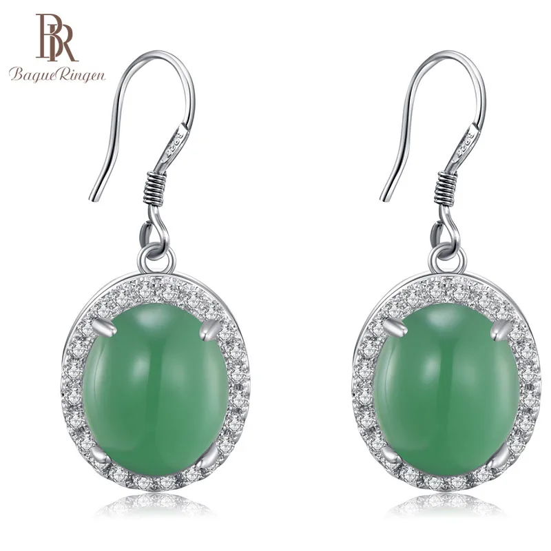 Bague Ringen Серебро 925 Висячие серьги с зеленым овальным нефритовым драгоценным камнем ювелирные изделия винтажные женские вечерние юбилейные ...