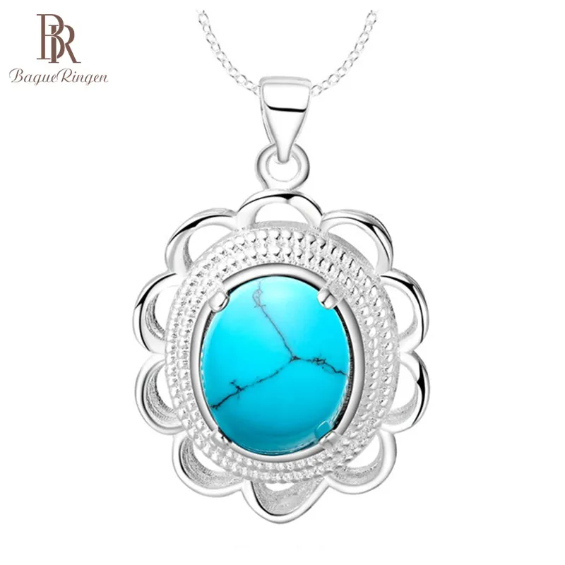 Bague Ringen в форме цветка серебро 925 драгоценных камней ожерелье для женщин Бирюза Кулон индивидуальный характер ювелирные изделия оптовая про...