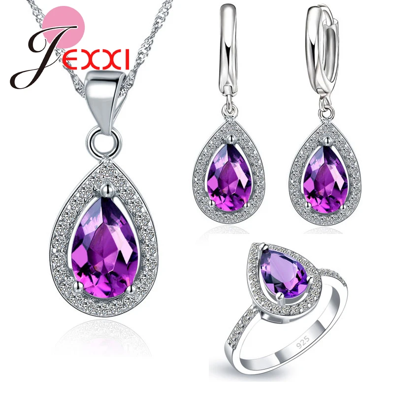 Комплект ювелирных изделий из серебра 925 пробы с подвеской в виде капель воды, серьги, кольца с цирконием AAA, Размер 6 7 8 9