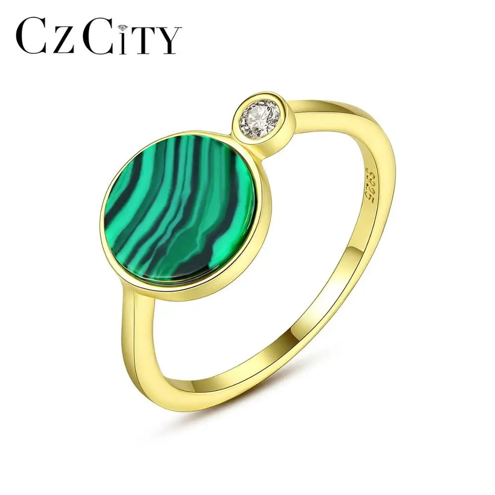 CZCITY 925 пробы серебряные круглые кольца с малахитом для Для женщин Свадебная вечеринка Роскошные CZ 18 k покрытием зеленый Романтический женск...