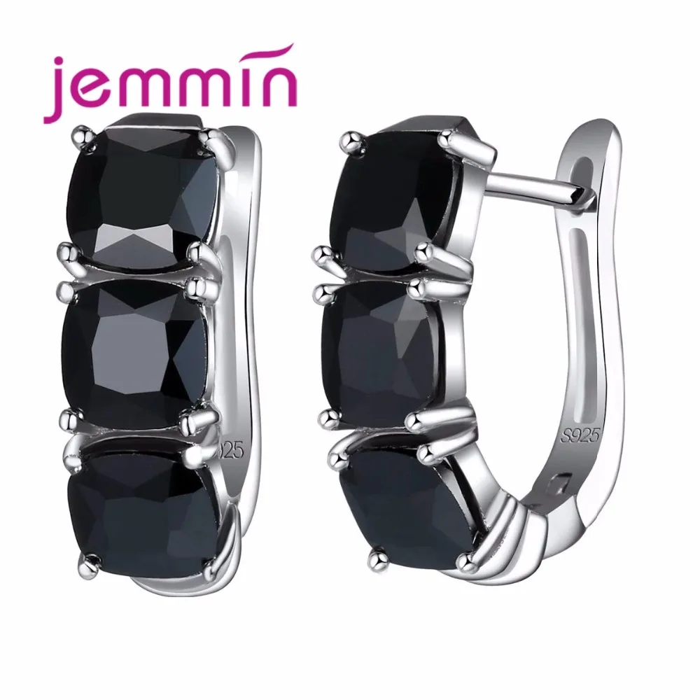 Jemmin Роскошный Черный Кристалл 925 пробы серебряные серьги-кольца для вечерние партия ювелирные изделия женские серьги Свадебные аксессуары