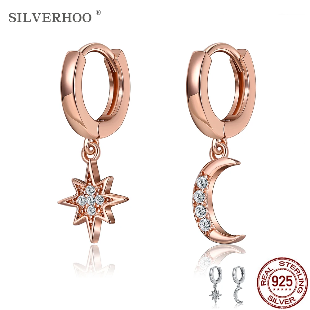 SILVERHOO классические геометрические Женские Висячие серьги асимметричные серьги звезда и Луна женский корейский Серебряный 925 Ювелирные изделия Новое поступление
