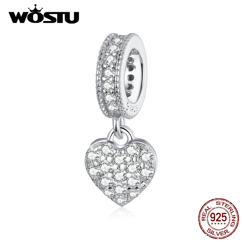 WOSTU, сверкающий циркон, звезда, амулеты, Стерлинговое Серебро 925 пробы, блестящая Звезда, подвеска из бисера, подходит для оригинального браслета, свадебные ювелирные изделия, подарок CTC210