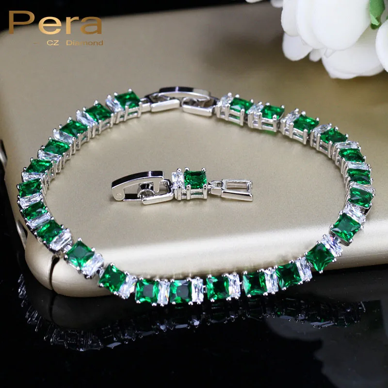 Pera, 8 цветов на выбор, квадратный зеленый Кристальный топаз, браслет для женщин, Стерлинговое Серебро 925 пробы, женские свадебные украшения, B023