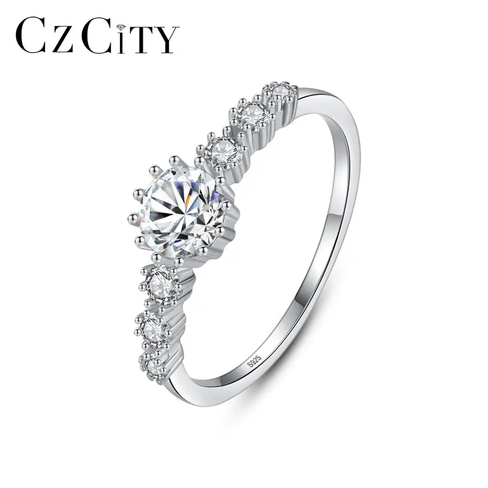 CZCITY, Настоящее серебро 100% 925 пробы, классические кольца на палец для женщин, Свадебные обручальные кольца с фианитами, хорошее ювелирное изд...