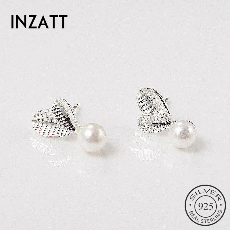 INZATT Мода реального 925 пробы серебро Классический Лист жемчужные серьги для Для женщин Fine Jewelry Романтический аксессуары Brincos подарок