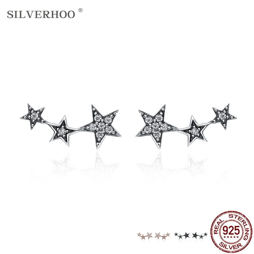 Женские серьги из настоящего серебра 925 пробы SILVERHOO, изящные серьги с фианитом в виде звезды, Женские Ювелирные изделия, подарок на день Святого Валентина