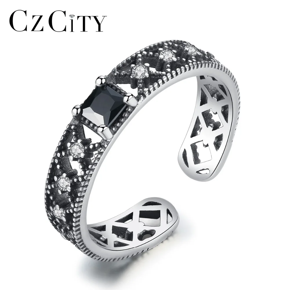 CZCITY геометрический Аутентичные кольца из стерлингового серебра 925 для Для женщин полые Дизайн цирконами ювелирное модное кольцо напрямую с...