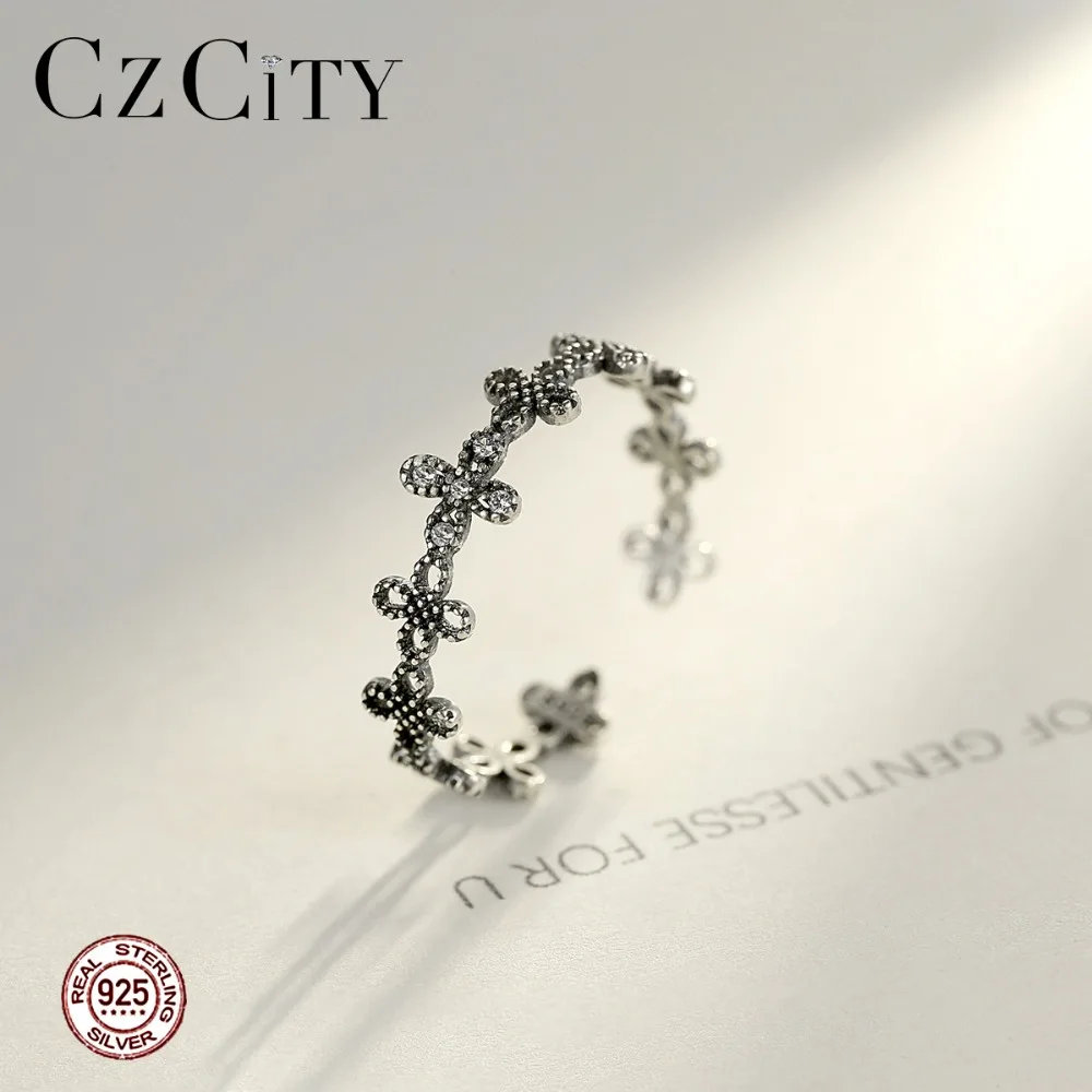 CZCITY милые 925 стерлингового серебра Открытые Кольца для вечерние для вечеринок и свиданий Серебро Изысканный цветок-образный регулируемый ж...