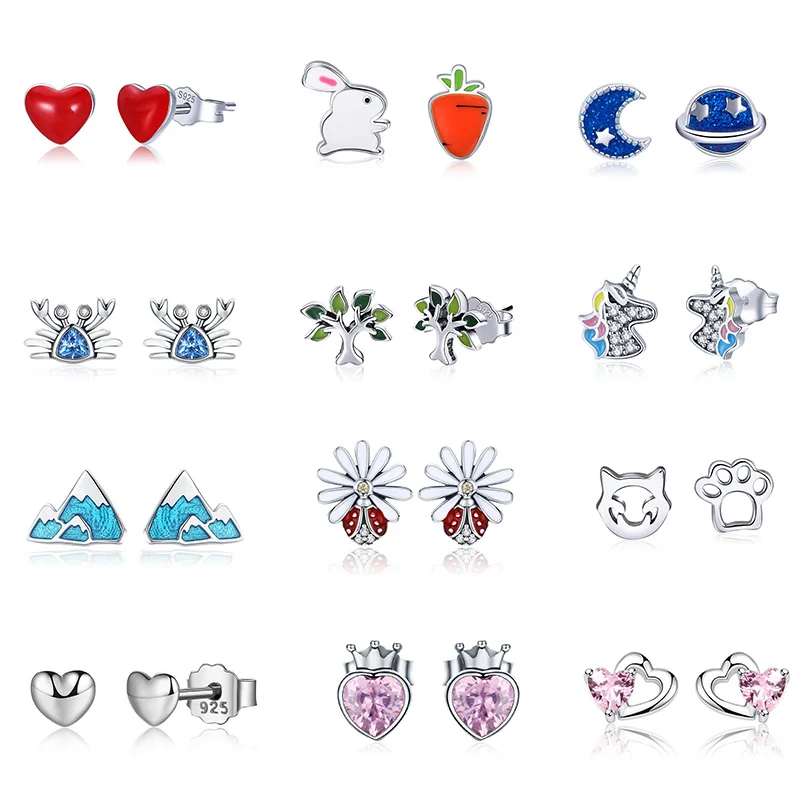 VOROCO Настоящее серебро 925 проба серьги-гвоздики красное сердце Love Star ипомея белая серебро 925 ювелирные изделия Свадебные серьги для женщин