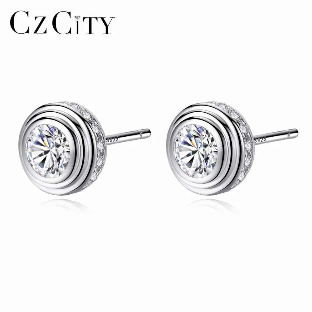 CZCITY бренд Ясно Циркон действительно 925 пробы серебряные серьги гвоздики для женщин Романтический круглый и прекрасный стиль ювелирные укра...