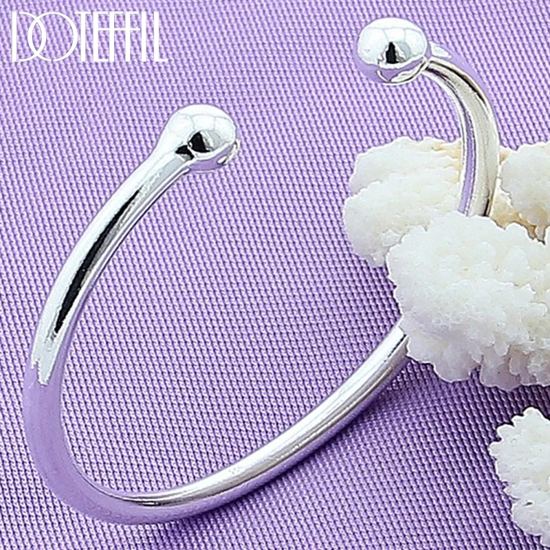 DOTEFFIL, серебро 925 пробы, 4 мм, гладкий цельный браслет из бисера, запонки, браслеты для женщин и мужчин, Свадебные вечерние ювелирные изделия для помолвки