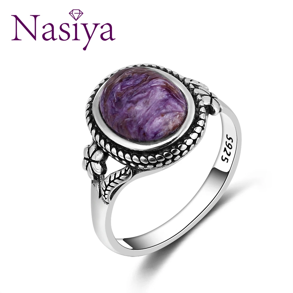 Nasiya винтажный богемский стиль 8x10 мм овальные фиолетовый Чароит кольца для женщин 925 Серебряное кольцо Подарок на годовщину ювелирные издел...