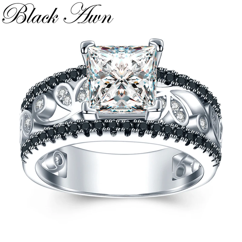 Женское Обручальное кольцо [BLACK AWN], Настоящее серебро 925 пробы, модные свадебные кольца для женщин, ювелирные изделия из стерлингового серебра C020