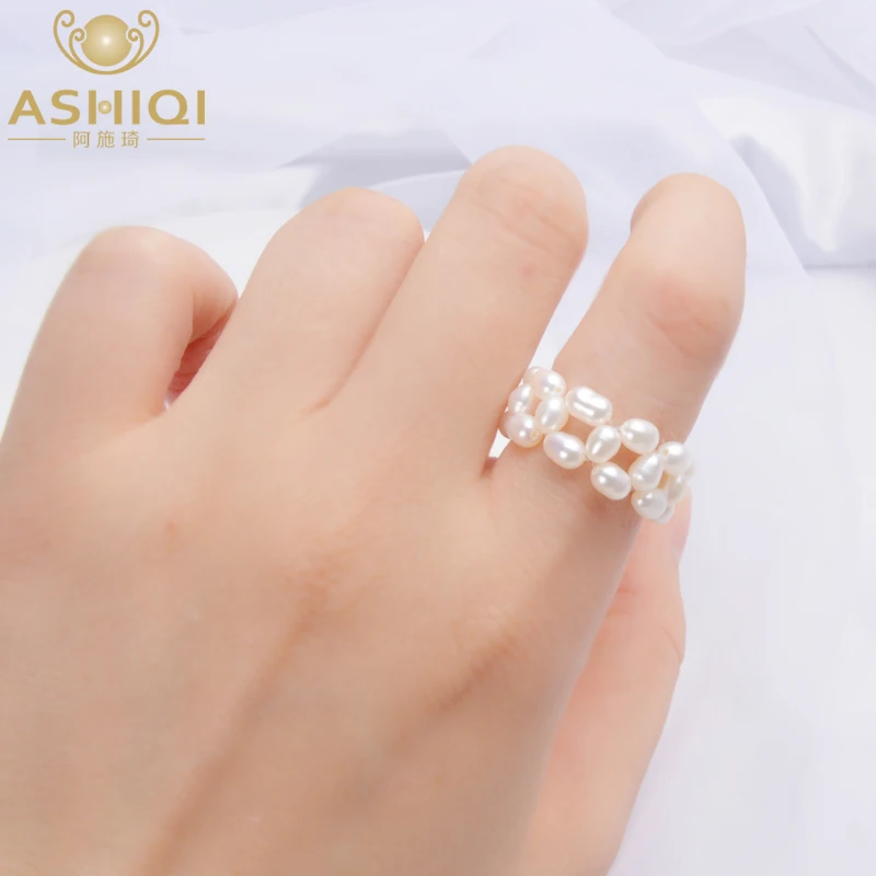 N свадебный подарок FishinASHIQI настоящие кольца с натуральным пресноводным жемчугом для Womeg линии плетеные Ручные ювелирные изделия 2019 Мода