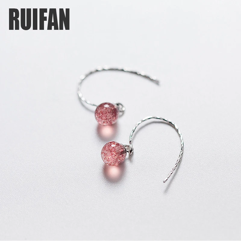 Ruifan милый розовый цвет натуральный клубника кварт ушные крючки 925 пробы серебро для женщин Малый серьги гвоздики ювелирные украшения YEA242