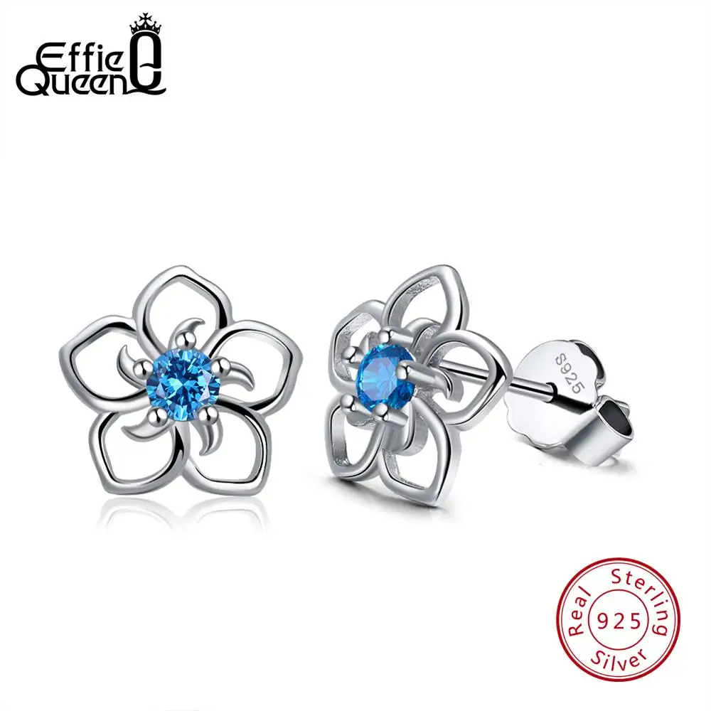 Женские серьги-гвоздики Effie Queen из настоящего серебра 925 пробы с прозрачным синим, красным, фиолетовым цирконием, ювелирные изделия, подарок BE71