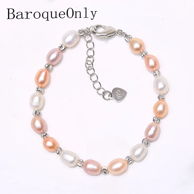 Браслет с натуральным пресноводным жемчугом BaroqueOnly, из стерлингового серебра 925 пробы, сферический, смешанный цвет, жемчужный браслет, ювелирное изделие HBB