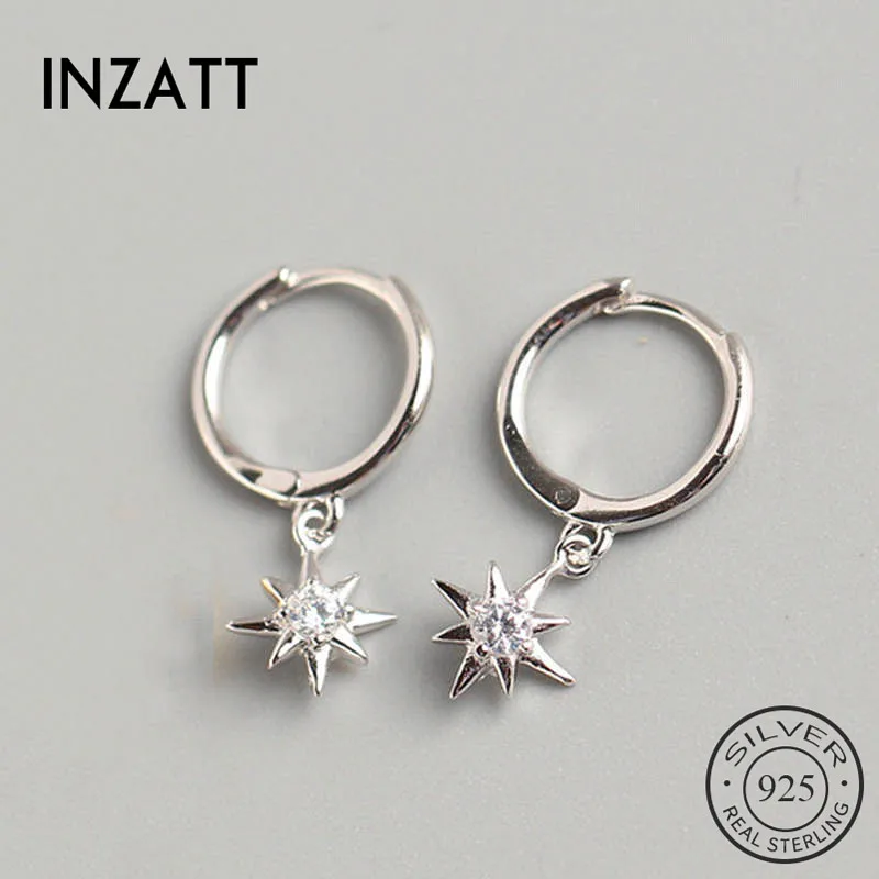 INZATT, настоящее 925 пробы, серебряные циркониевые серьги-кольца в форме звезды для модных женщин, вечерние ювелирные украшения, минималистичн...