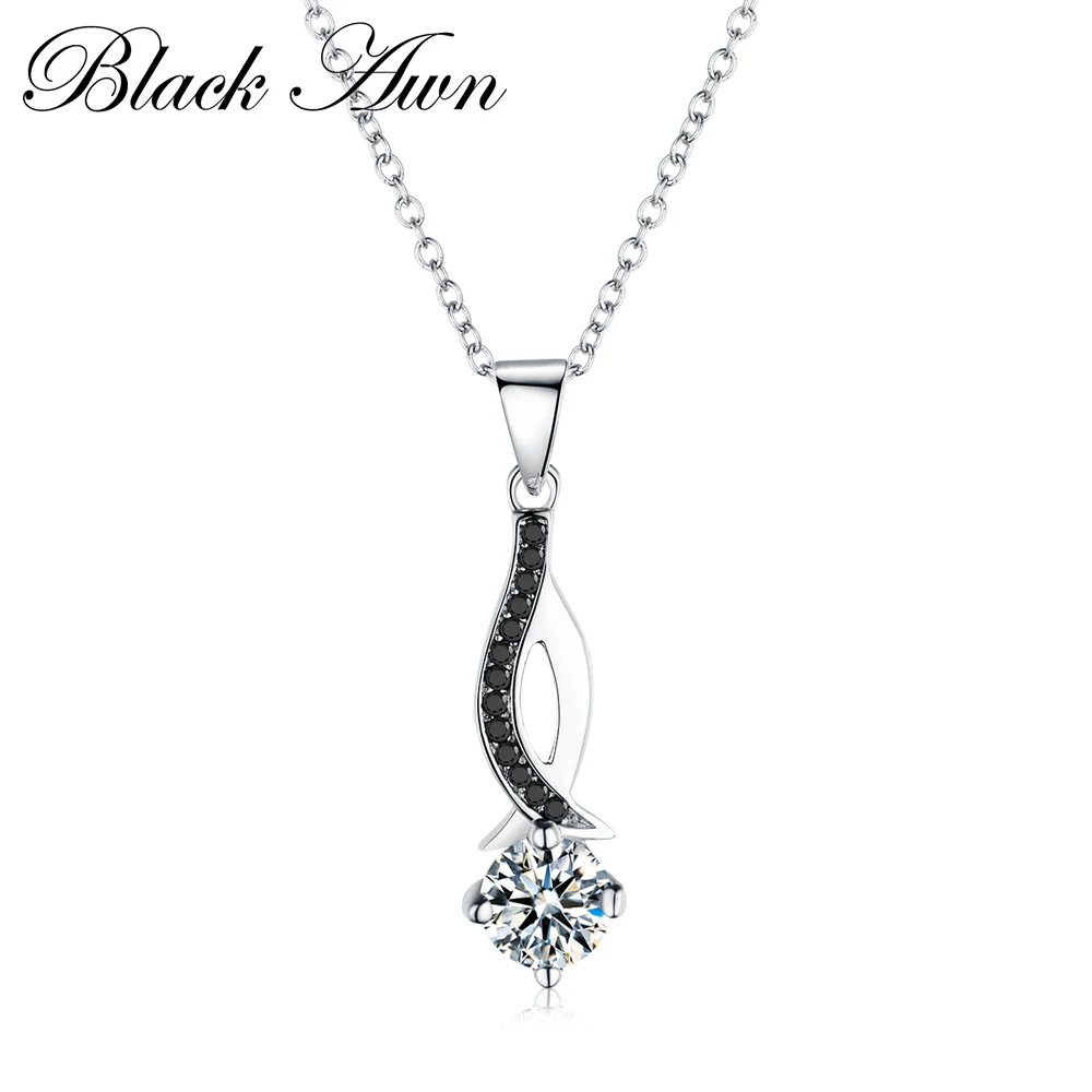 [Черный AWN] натуральная 100% 925 пробы серебряные ювелирные изделия цепочки и ожерелья s Подвески Мода черный Шпинель для женщин P073