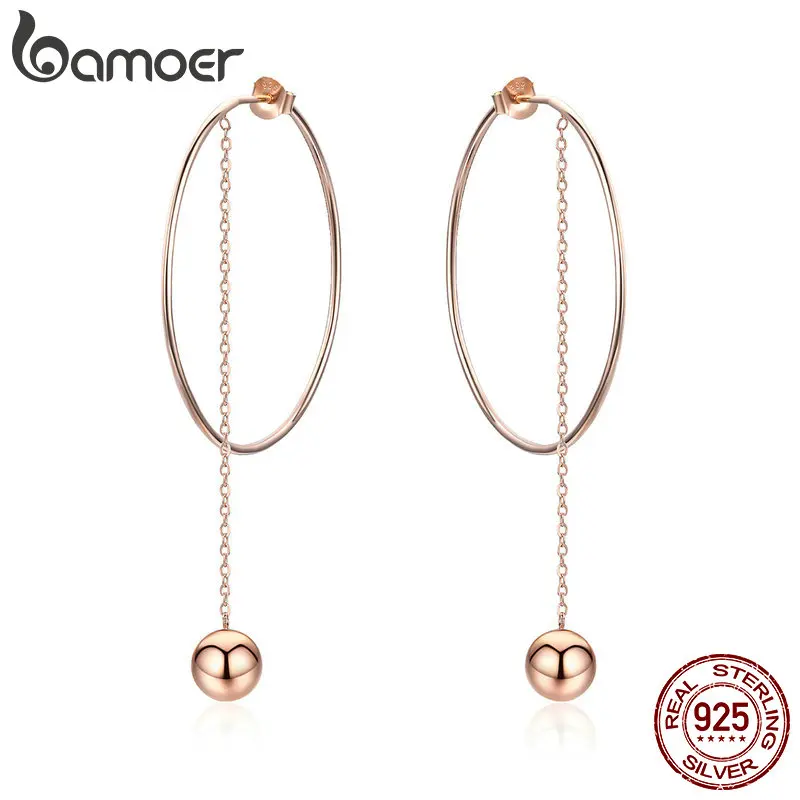 BAMOER Популярные 100% Серебро 925 пробы Большой Круг Круглый длинная цепь Висячие серьги для женщин Рок Стиль Ювелирные изделия SCE569