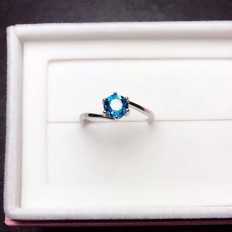 Кольца с натуральным голубым топазом для женщин, 925 пробы серебро, 6*6 мм драгоценный камень, ювелирные изделия с бархатной коробкой FJ299