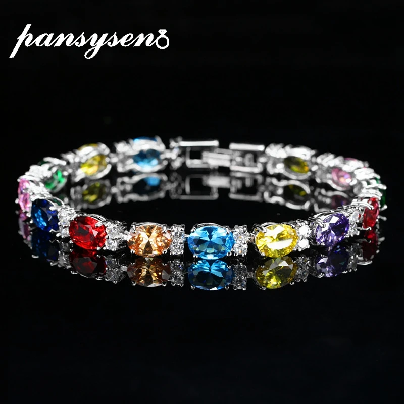 Женский браслет с разноцветным топазом PANSYSEN, роскошный браслет из стерлингового серебра 925 пробы с камнем для свадебной вечеринки