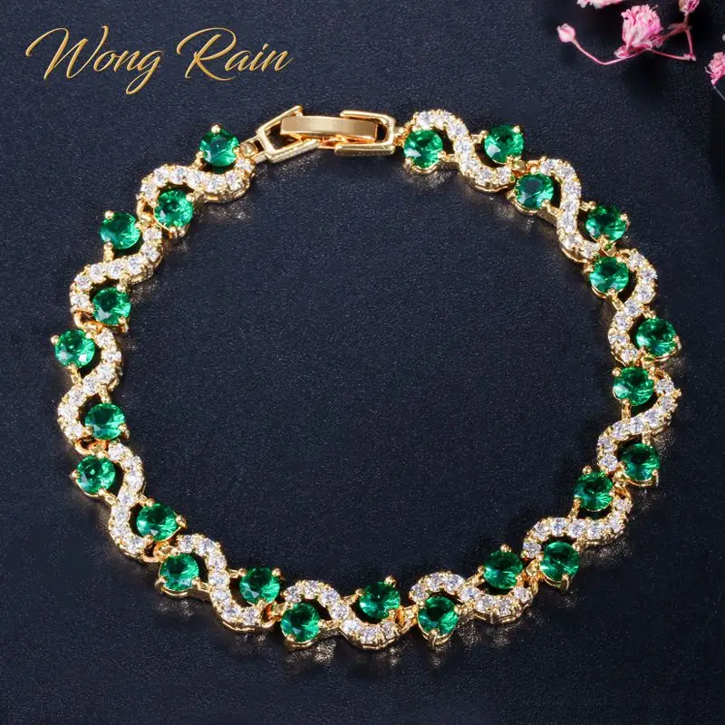 Wong Rain, богемные 925 пробы, серебряный, созданный Муассанит, рубби, изумруд, драгоценный камень, браслет, очаровательные браслеты, хорошее ювел...