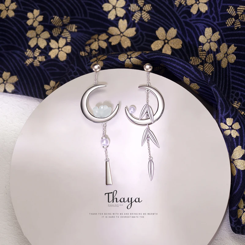 Thaya Аутентичные 925 пробы серебряные серьги серьга в виде полумесяца листья бамбука японский Стиль для Для женщин серьги ювелирные украшения