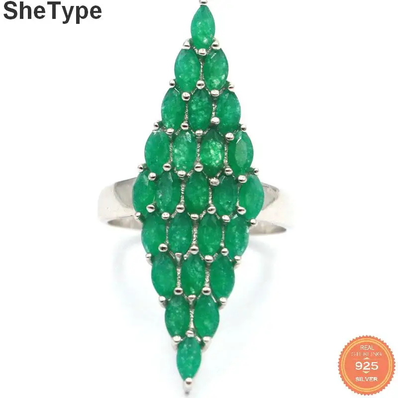 35x13 мм 5,2 г красивый настоящий зеленый изумруд подарок для женщин 925 Твердые кольца из стерлингового серебра