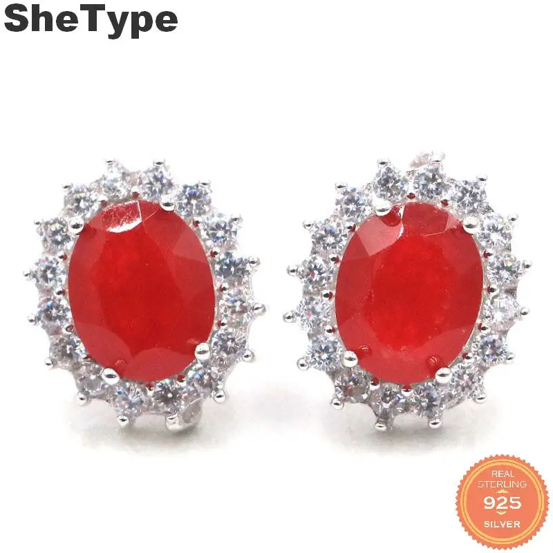 SheType 4,3 г настоящий красный рубин белый кубический цирконий подарок для девочек серебро 925 пробы Серьги-гвоздики 22x10 мм