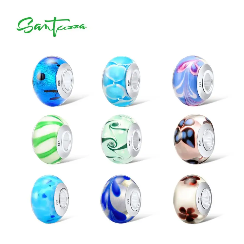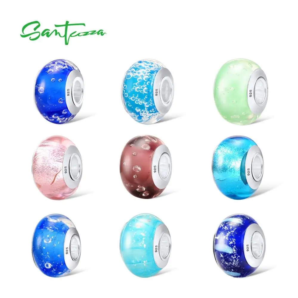 Santuzza Серебряный Шарм Красочные Бусины Шарм подходит для браслета браслет сделай сам изготовление 100% чистое серебро 925 пробы модные ювелирные изделия