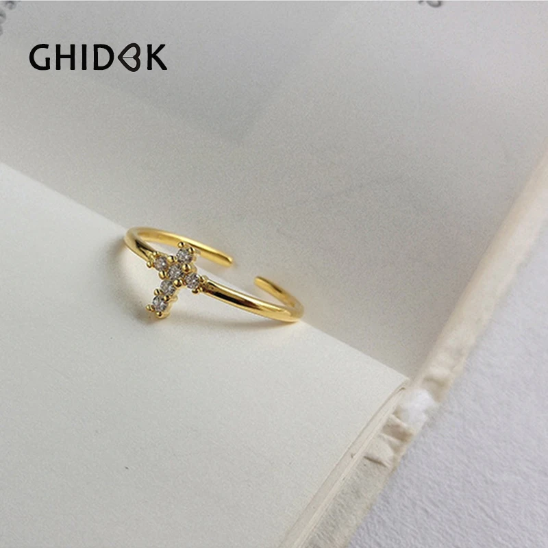 GHIDBK персонализированное Серебро S925 Крест CZ открытые Регулируемые кольца изящное кольцо с фианитом женское минималистское кольцо летние ювелирные изделия