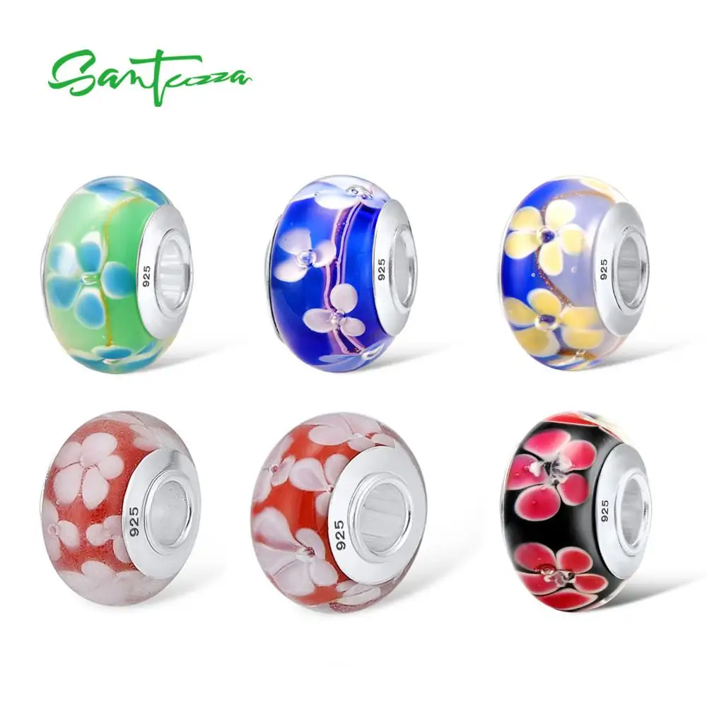Santuzza Серебряный Шарм цветок красочные бусины Шарм подходит для браслета браслет сделай сам изготовление 100% чистый 925 пробы серебряные ювелирные изделия
